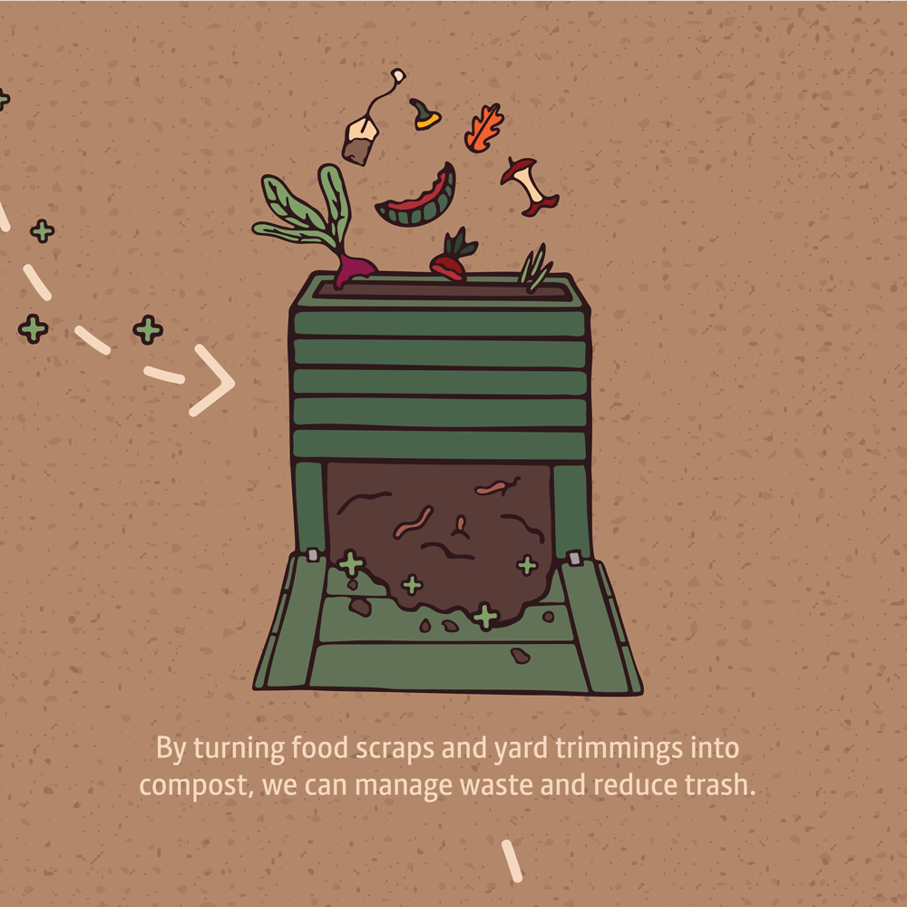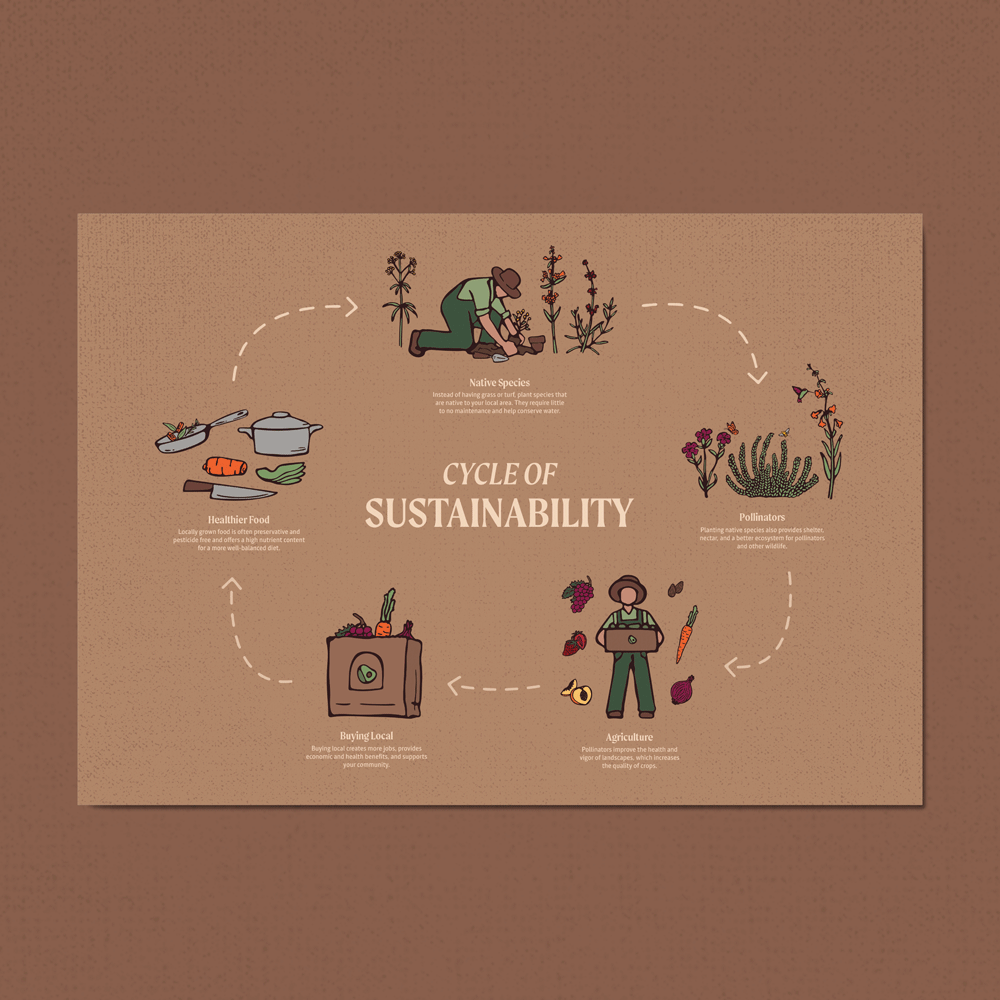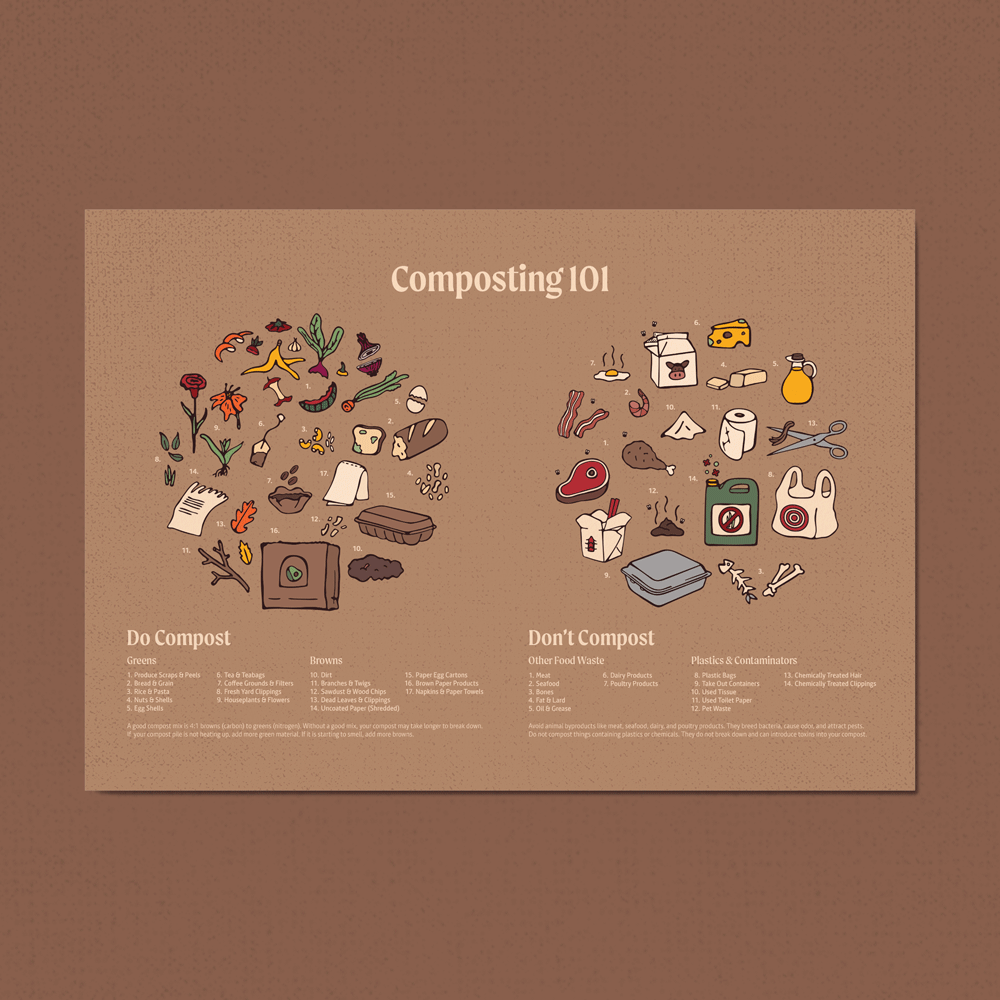 Composting Series Illustration Description An poster series illustrating the reasons for and benefits of composting and how it effects individuals and communities. Includes Cycle of SustainabilityComposting 101Why Compost?